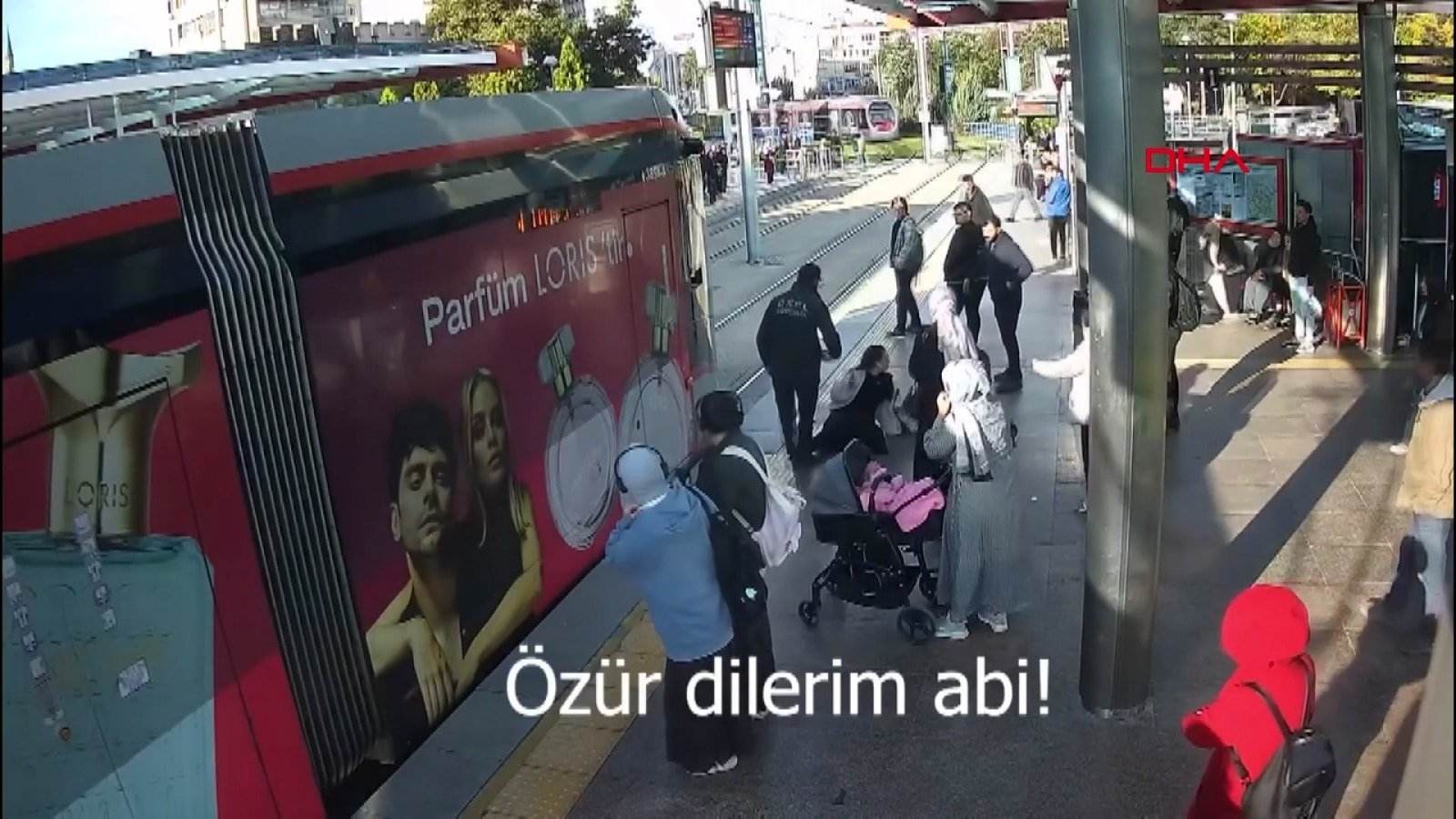 Görüntülerde, yayanın kendisini kurtaran güvenlik görevlisinden özür dilediği duyuldu. Kayseri Büyükşehir Belediyesi Ulaşım A.Ş., sosyal medya hesabından yaptığı paylaşımda, yolculara raylı sistem hatlarında dikkatli olmaları, yaya geçitlerini kullanmaları ve kulaklıkla çevresel sesleri duyamayacaklarını hatırlattı.