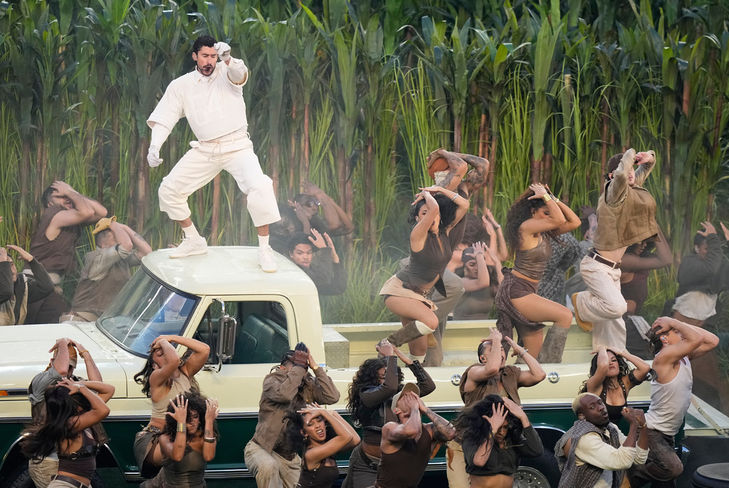 LADY GAGA SÜRPRİZİ Çiftin birbirini öpmesinin ardından sahnenin sürprizi Lady Gaga devreye girdi. Porto Rikolu salsa grubu Los Sobrinos sahneye çıktı. Gaga'nın 'Die With a Smile' şarkısının bir bölümünü çaldıktan sonra Bad Bunny, hit şarkısı 'Baile Inolvidable' ile sahneye katıldı.