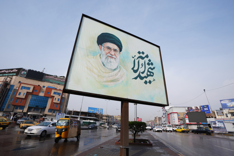 Başkentin birçok noktasına asılan posterlerin arasında İran destekli Iraklı Şii milis gücü Nuceba Hareketi lideri Akram Kaabi ile Mücteba Hamaney’in yan yana olduğu görseller de bulunuyor.