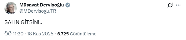 İLK TEPKİ DERVİŞOĞLU'NDANBahçeli'nin açıklamasından dakikalar sonra X üzerinden yaptığı paylaşımla tepki gösteren İYİ Parti lideri Müsavat Dervişoğlu, SALIN GİTSİN!..." paylaşımında bulundu.