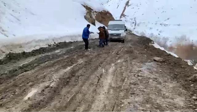 Van’ın Bahçesaray ilçesinde etkili olan olumsuz hava ve yol şartları, vatandaşların günlük yaşamını zorlaştırmaya devam ediyor. Temel ihtiyaçlarını karşılamak için yola çıkan vatandaşlar, çamura saplanan araçlarını kendi imkanlarıyla kurtarmaya çalışıyor.