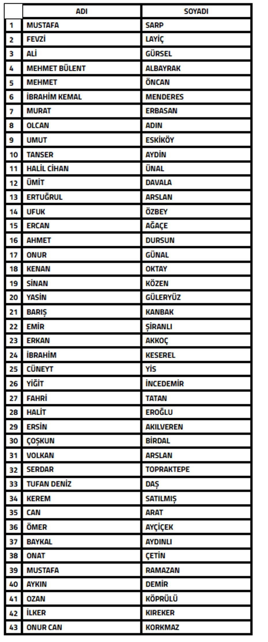 PFDK'ya sevk edilen isimler şu şekilde: