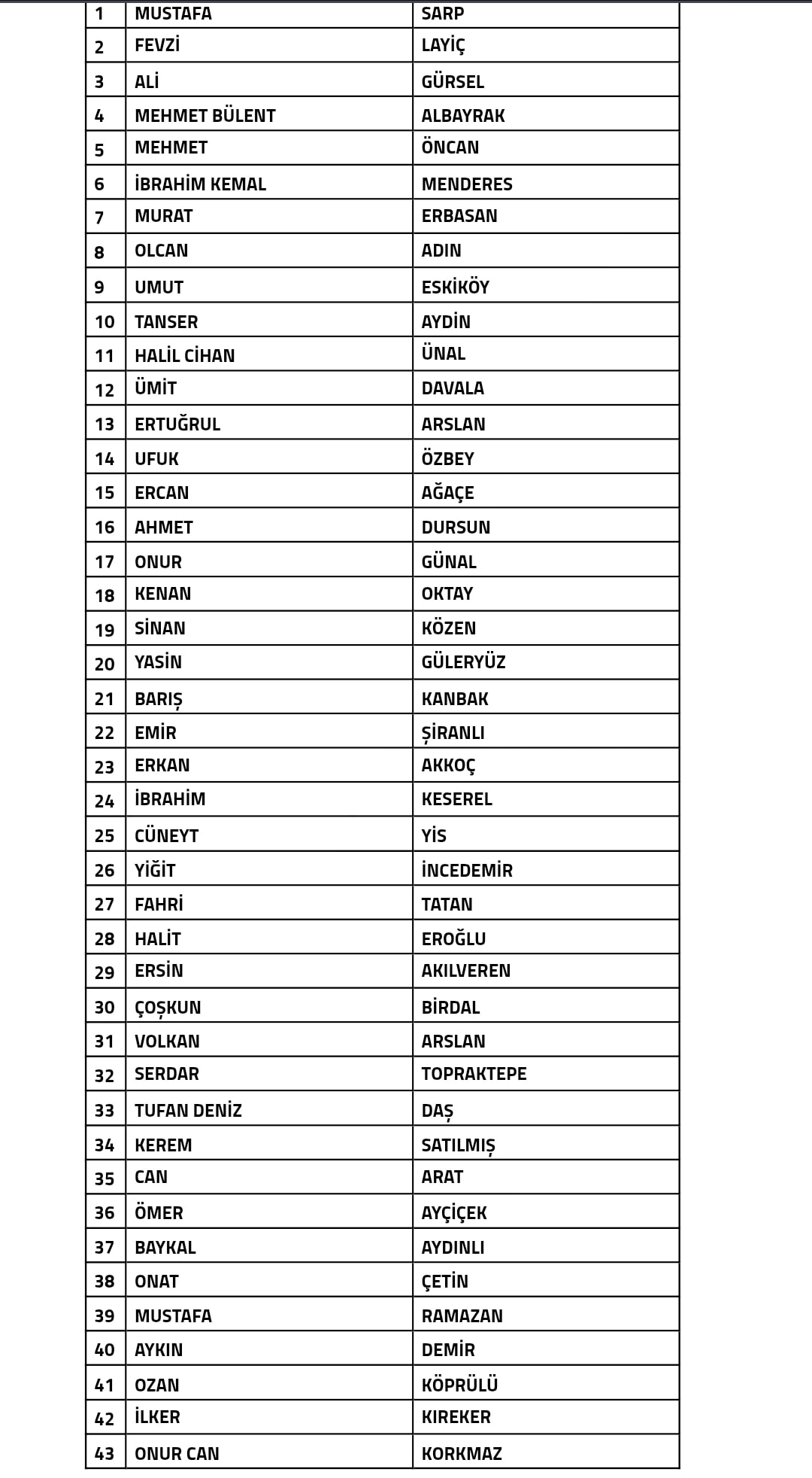 İşte o isimler: