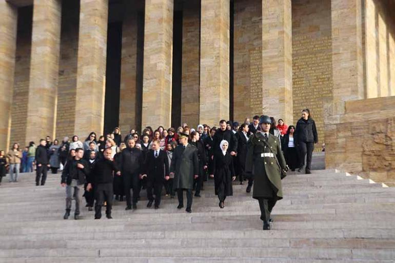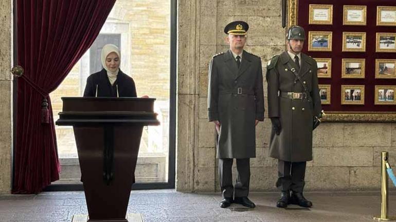 Bakan Göktaş'ın başkanlığında kadın milletvekilleri, rektörler, akademisyenler ve sivil toplum kuruluşlarının temsilcileri oluşan heyet, Aslanlı Yol'dan yürüyüp Atatürk'ün mozolesine geldi. Göktaş'ın mozoleye çelenk bırakmasının ardından heyet, saygı duruşunda bulundu. Tören daha sonra Misak-ı Milli Kulesi'nde devam etti. Anıtkabir Özel Defteri'ni imzalayan Bakan Göktaş, deftere şunları yazdı: