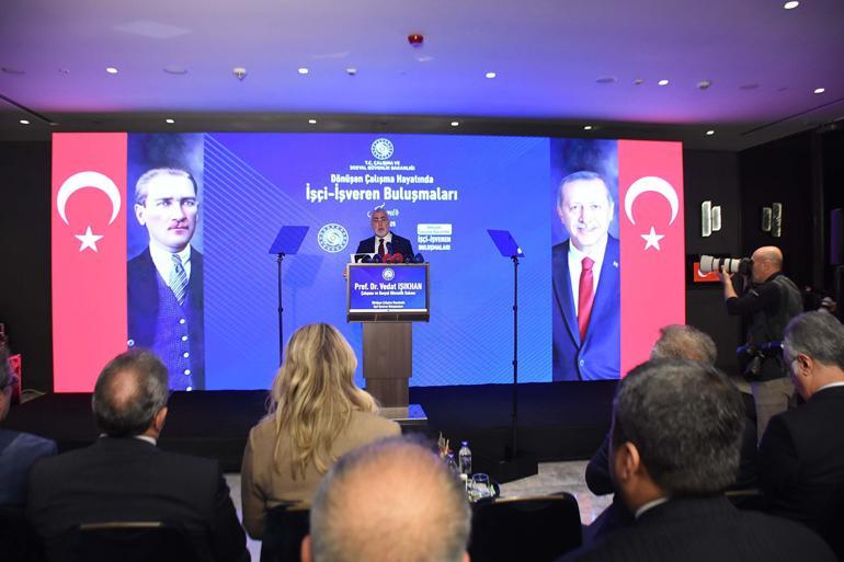 “Emek, üretimin en değerli unsurudur" diyen Bakan Işıkhan, “Emeği göz ardı ederek, sürdürülebilir büyüme sağlamak ve toplumsal refahı artırmak mümkün değildir. Bu nedenle hükümet olarak, Cumhurbaşkanımızın liderliğinde; tüm politikalarımızda, emeği merkeze alan, sosyal diyaloğu önceleyen ve insan onurunu yücelten bir yaklaşımı benimsiyoruz. Bugüne kadar, çalışma hayatında gerçekleştirdiğimiz tüm reformların odağında insan ve emek vardır. Asgari ücret, çalışma hayatımızda en temel ücret seviyesini ifade eden bir göstergedir. Bu yıl da aralık ayının başlarında 'Asgari Ücret Tespit Komisyonu’muz toplanarak, işçi ve işveren temsilcilerimizle yeniden bir araya gelecek. Bu süreçte; temel önceliğimiz, sosyal diyalog çerçevesinde tarafların ortak akılla uzlaşmaya varmasıdır. Komisyondan hem çalışanlarımızın refahını koruyan hem de işverenlerimizin üretim ve istihdam gücünü gözeten, optimal bir seviyenin ortaya çıkacağına inanıyorum. Her mesele gibi dönüşümün başarıya ulaşması birlikte düşünmek, birlikte karar almak ve birlikte uygulamakla mümkündür" dedi.