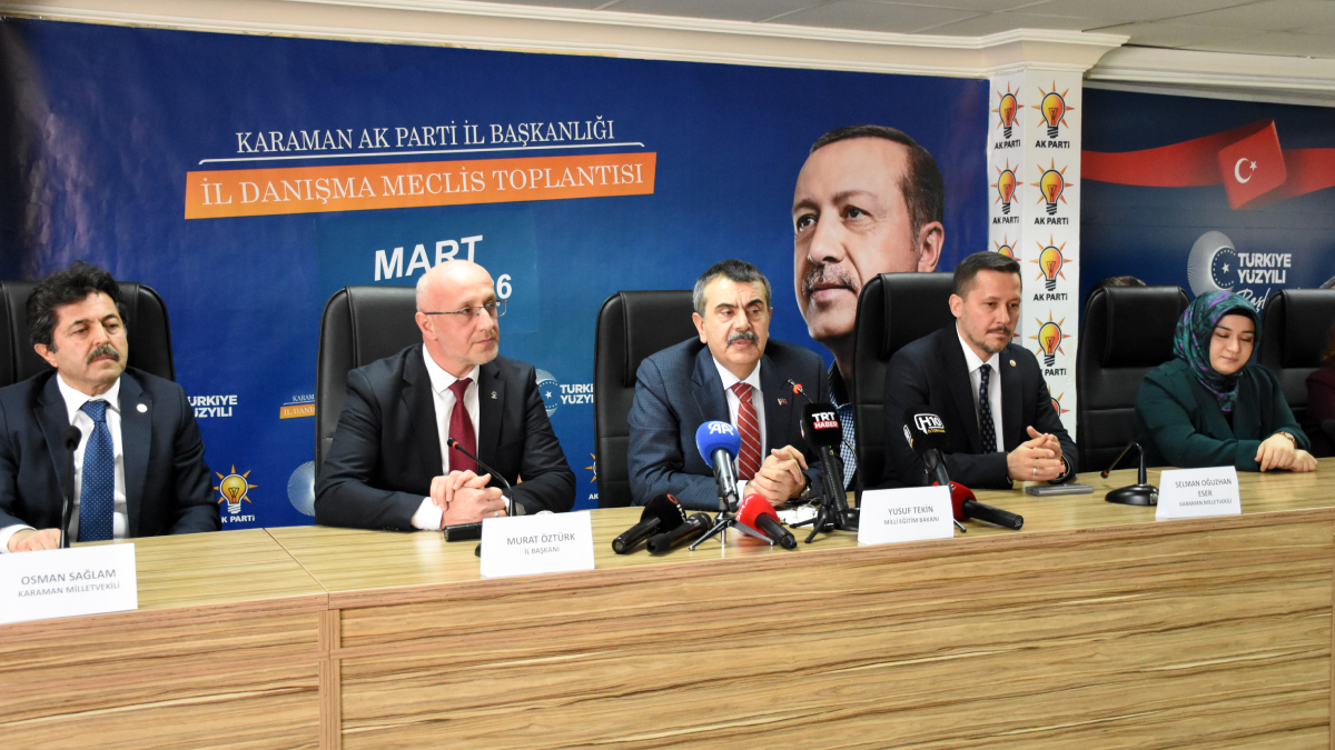 Milli Eğitim Bakanı Yusuf Tekin, Karaman'daki İl Başkanlığı'nda düzenlenen AKP İl Danışma Meclisi Toplantısı'nda açıklamalarda bulundu.