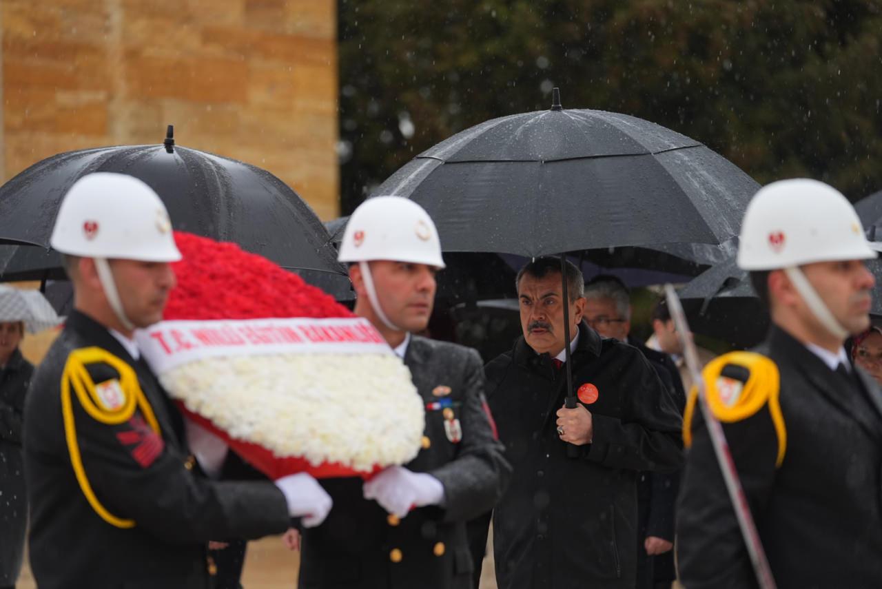 Bakan Tekin'in başkanlığındaki bakanlık bürokratlarından oluşan heyet, Aslanlı Yol'dan Gazi Mustafa Kemal Atatürk'ün mozolesine yürüdü.