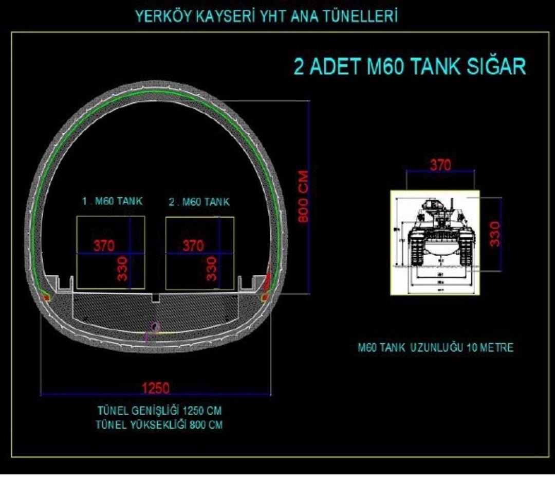 Demiryolu tünelleri ve makas yapılarının da gerektiğinde sığınma veya tahliye koridoru olarak kullanılabileceğini ifade eden Bakan Uraloğlu, “Çift hatlı demiryolu tünellerimiz de yalnızca lojistik taşımaları değil; özel durumlarda sığınma, barınma ve tahliye gibi amaçları da mümkün kılıyor. Faydalı genişliği 12,5 metre, yüksekliği 8 metre olan çift hatlı demiryolu tünellerimiz; iki M60 tankın yan yana geçişine imkân tanıyan, hatta bir F-16 uçağının sığabileceği kadar geniş bir hacme sahiptir.” bilgisini paylaştı.