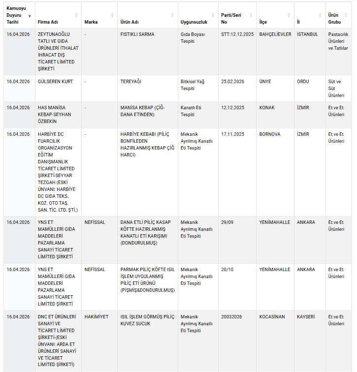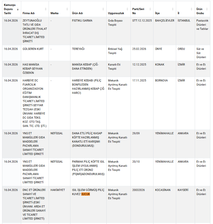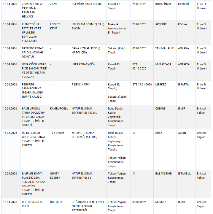 Bakanlık tarafından gerçekleştirilen denetimler sonucunda, et ürünleri grubunda beyan edilen içerik ile gerçek muhteva arasında farklılıklar olduğu saptandı.