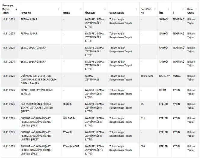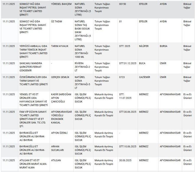 Tarım ve Orman Bakanlığı, taklit-tağşiş yapılan ve sağlığı tehlikeye düşürebilecek gıdalar listesini güncellemeye devam ediyor. Bakanlık, "guvenilirgida.tarimorman.gov.tr" adresindeki bilgilere ekleme yaptı.