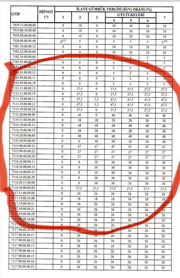 "Söz konusu düzenleme ile bahsedilen değerli maden ve mücevherat ürünleninin vergi yükünde bir azalma öngörülmemiş, daha önce Ek Mali Yükümlülük kapsamında uygulanan %20 oranındaki vergi, aynı oran korunarak İlave Gümrük Vergisi uygulaması kapsamına alınmıştır.
