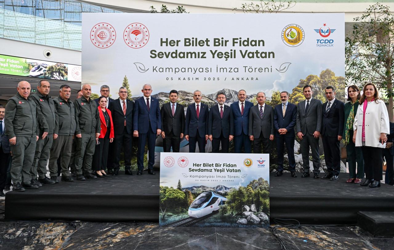 "Her Bilet Bir Fidan Sevdamız Yeşil Vatan Kampanyası ile 11 Kasım 2025-11 Kasım 2026 tarihlerinde 1 yıl boyunca yüksek hızlı trenlerimizle, Ankara-İstanbul, Ankara-Eskişehir, Ankara-Konya, Ankara-Karaman, İstanbul-Konya, İstanbul-Karaman, Eskişehir-İstanbul, Ankara-Sivas ve Sivas-İstanbul yüksek hızlı tren hatlarımızda seyahat eden her yolcumuz adına bir fidan dikeceğiz. Bu hatlarımızın genelinde yıllık ortalama 13 milyon yolcumuzun seyahat ettiğini düşündüğümüzde 13 milyon fidanı toprakla buluşturacağız. "