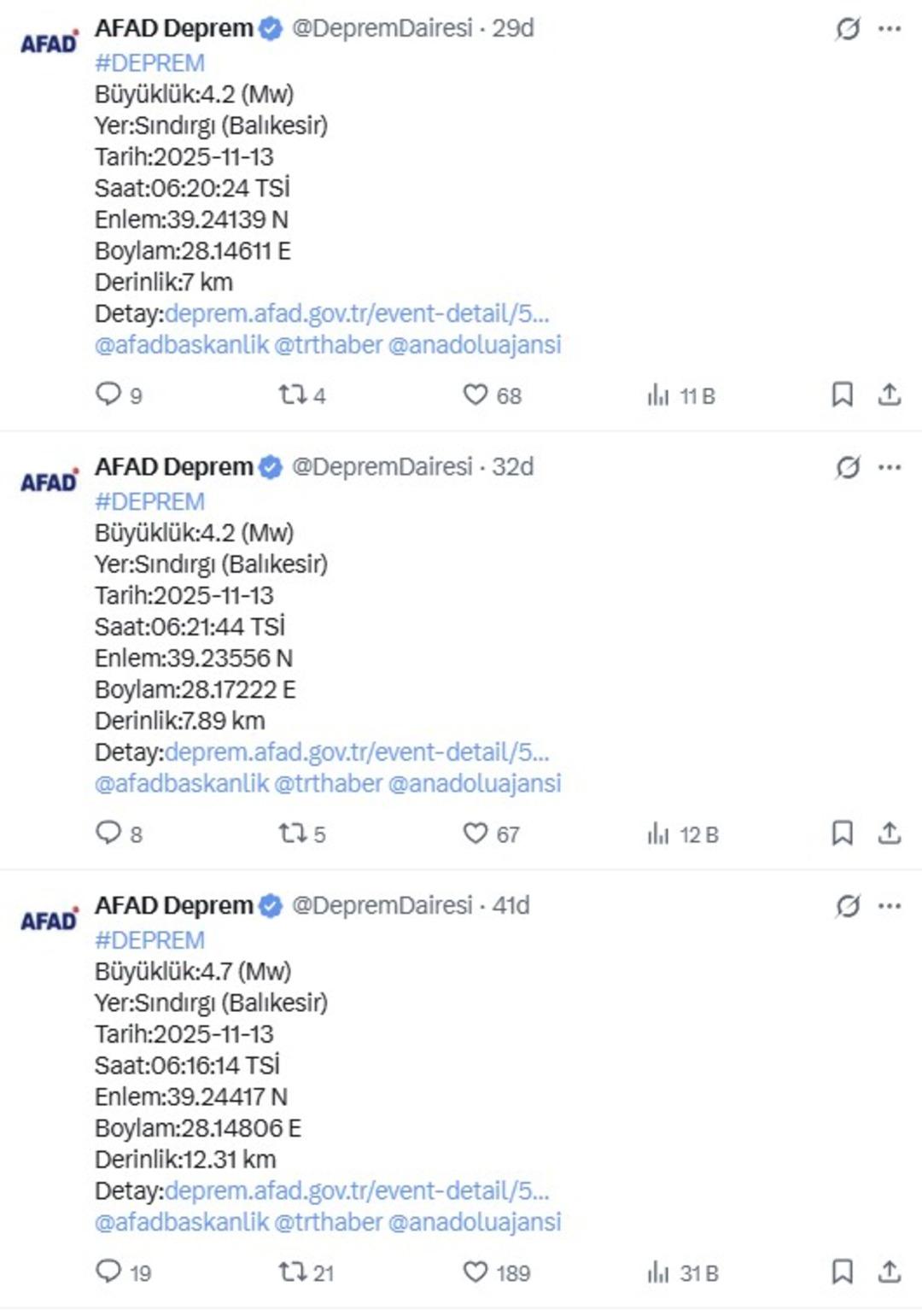 Balıkesir beşik gibi! 5 dakika içinde 4 üzeri 3 deprem....