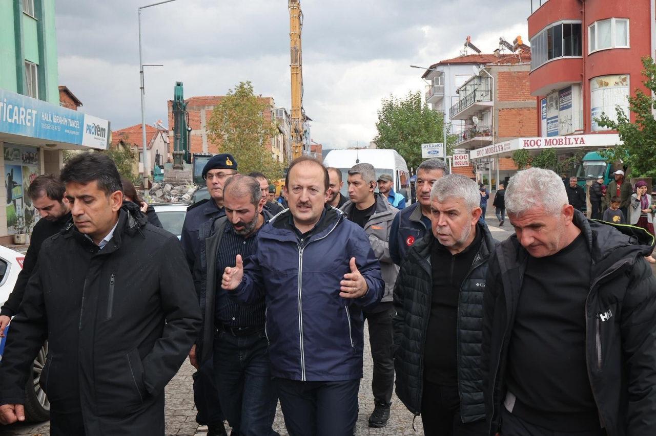 Depremin ilk saatlerinde Sındırgı’ya giden İçişleri Bakanı Sayın Ali Yerlikaya, AFAD Başkanımız Vali Ali Hamza Pehlivan, Balıkesir Valisi İsmail Ustaoğlu, Balıkesir Milletvekilleri, Sındırgı Kaymakamı, AFAD yöneticileri ve ilgili kurum temsilcileri ile birlikte koordinasyon toplantısı gerçekleştirdi, arkasından depremden etkilenen mahalleleri ziyaret etti, ilçe merkezinde enkaz kaldırma çalışmalarının yapıldığı alanlarda incelemelerde bulundu, devam eden yapılan çalışmalar hakkında vatandaşlarımızı bilgilendirdi, yönelttikleri soruları yanıtladı, taleplerini dinledi, devletimizin tüm imkanları, kurum ve kuruluşları ile sahada, milletimizin yanında, hizmetinde olduğunu belirtti.
