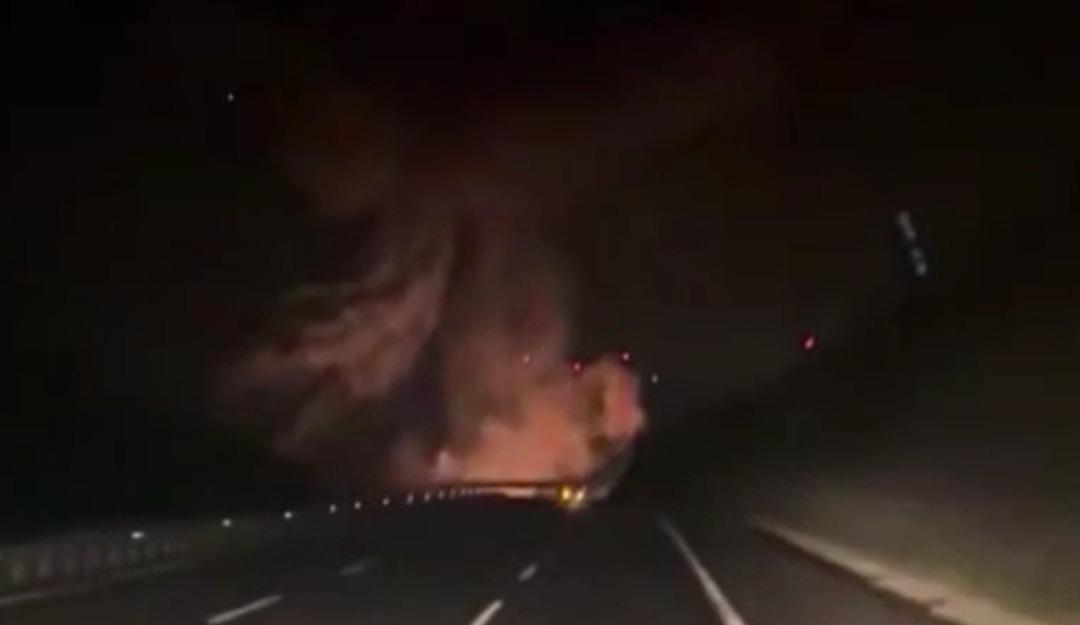Görüntülerde, otoyolda ilerleyen araçtaki vatandaşların gökyüzündeki patlamayı fark ederek büyük şaşkınlık yaşadığı görülüyor.