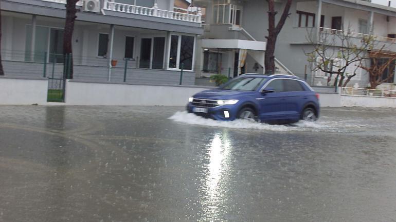 Burhaniye de sağanak; yollar göle döndü, evlerin bodrum katlarını su bastı