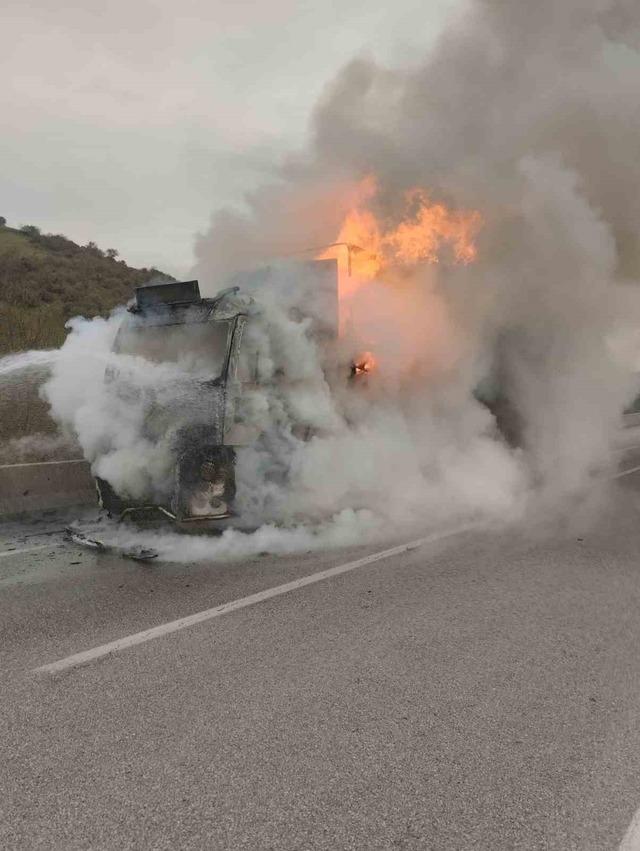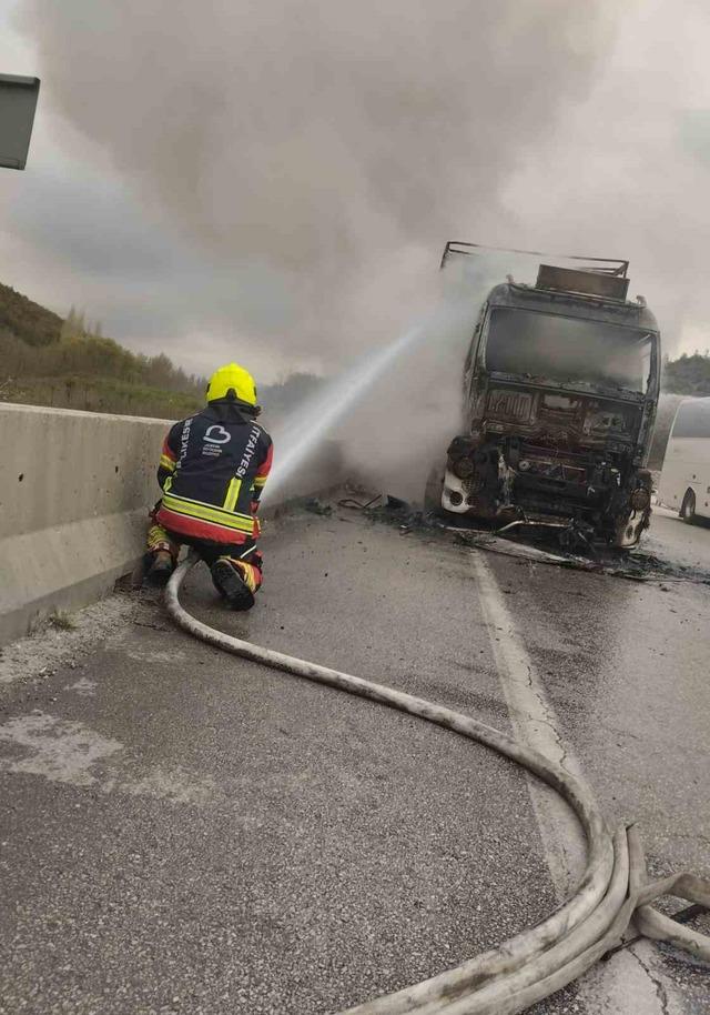 Balıkesir’de yanan tır kullanılmaz hale geldi