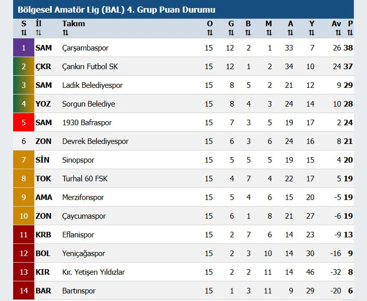 Bartınspor 6 puanla ligin son sırasında yer alıyorKÜME HATTINDAN KAÇMAYA ÇALIŞIYORBartınspor, ligde oynadığı 15 maçta sadece 1 galibiyet alabildi ve 3 beraberlik ile 11 yenilgi yaşadı.