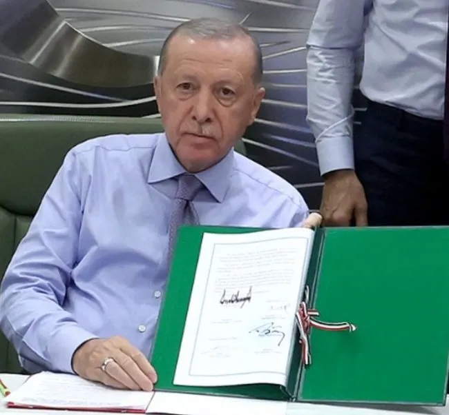 ABD Başkanı Sayın Trump, Mısır Cumhurbaşkanı Sayın Sisi, Katar Emiri Sayın Al Sani ve şahsım dörtlü bir imza uygulaması yaptık. Attığımız bu imzalar sıradan değil. Bu imzalarla da artık bu barış iradesi tarihin kayıtlarına girmiş durumda. Dilerseniz altına imza attığımız metni okuyalım: