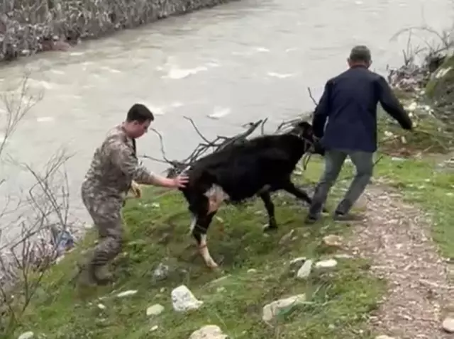Olay, akşam saatlerinde Veysel Karani beldesinde meydana geldi. Mehmet Sani Cengiz’e ait buzağı kaçarak dereye doğru yöneldi. Buzağının peşine düşen sahibi ve bölgede bulunan polis memuru, dere kenarında kovalamaca yaşadı.