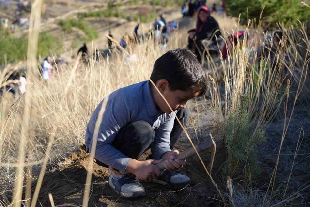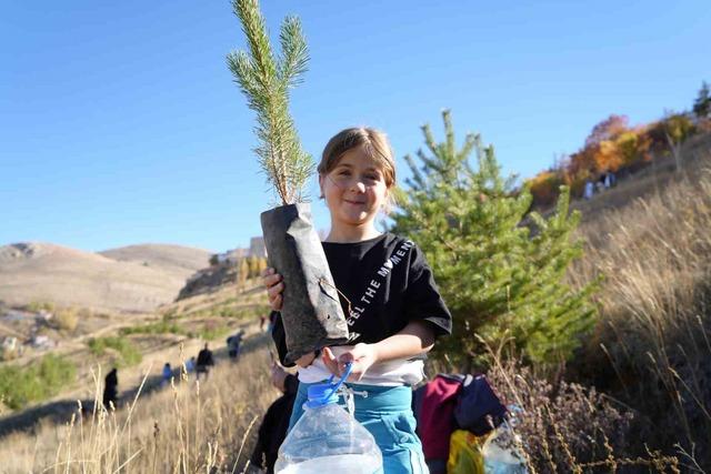 Bayburt’ta ‘Benim Okulum, Geleceğe Çare Yeşil Vatan’ projesi kapsamında düzenlenen fidan dikim etkinliğinde öğrenciler, öğretmenleri ve aileleriyle birlikte 150 çam fidanını toprakla buluşturdu.