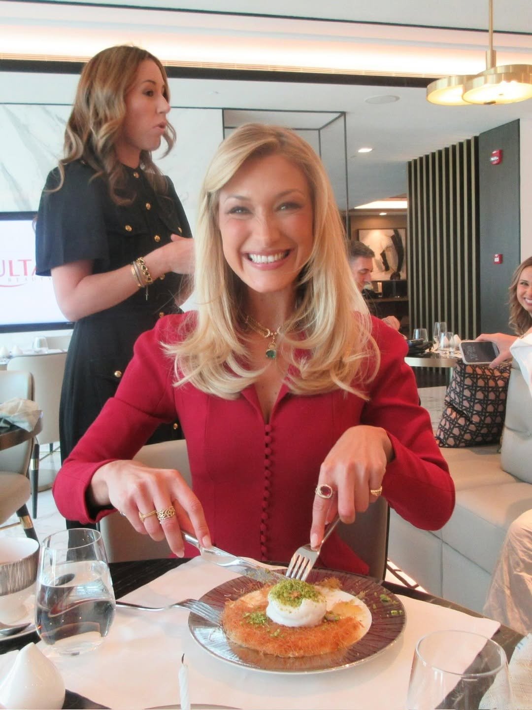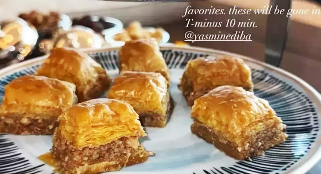 Daha önce Kapadokya gezisinde et döner yerken görüntülenen, ardından elinde Türk kahvesi paketiyle poz veren, geçen gün de cevizli baklavaya olan sevgisini paylaşan Hadid, bu kez de künefe denedi.