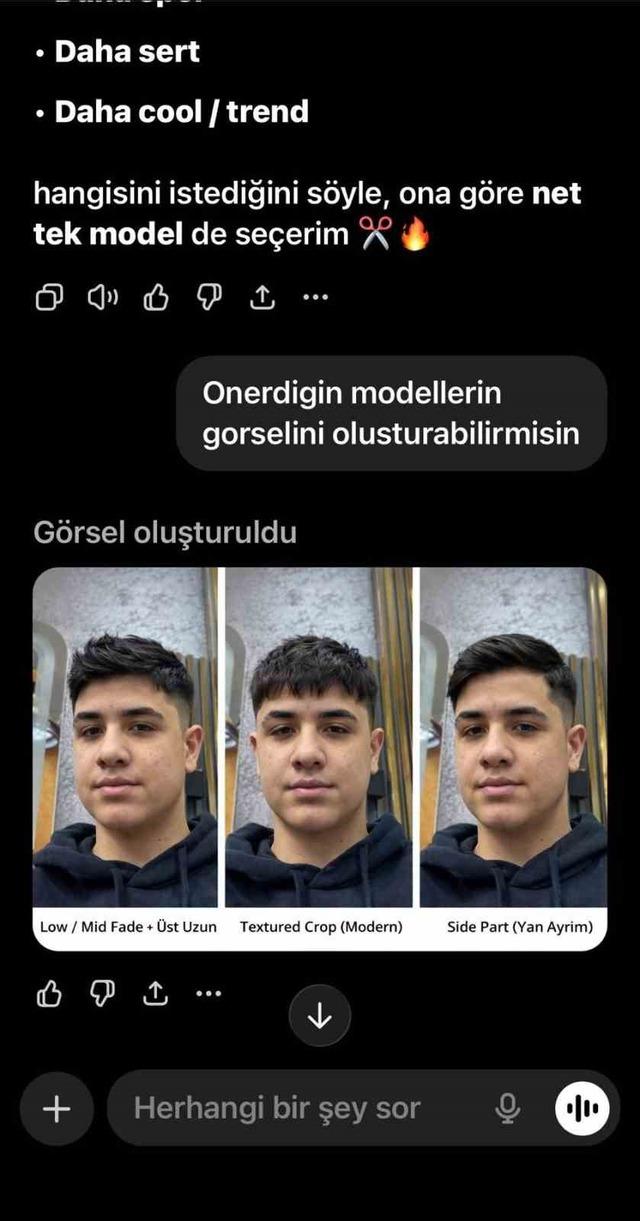 Vatandaşların günlük yaşamlarında sık sık kullandıkları yapay zeka, son olarak berberlerde de yeni bir akım başlattı. Tıraş olmak için berbere giden vatandaşlar, kendi fotoğraflarını yapay zekaya göstererek saç modeli konusunda yardım alıyor ve modelleri gözleri ile görüyor. Kullanılan özellikle beraber hem berberlerin tıraş yapması kolaylaşıyor hem de vatandaşlar istedikleri saç ve sakal modellerinin nasıl olacağını tıraştan önce görmüş oluyor.