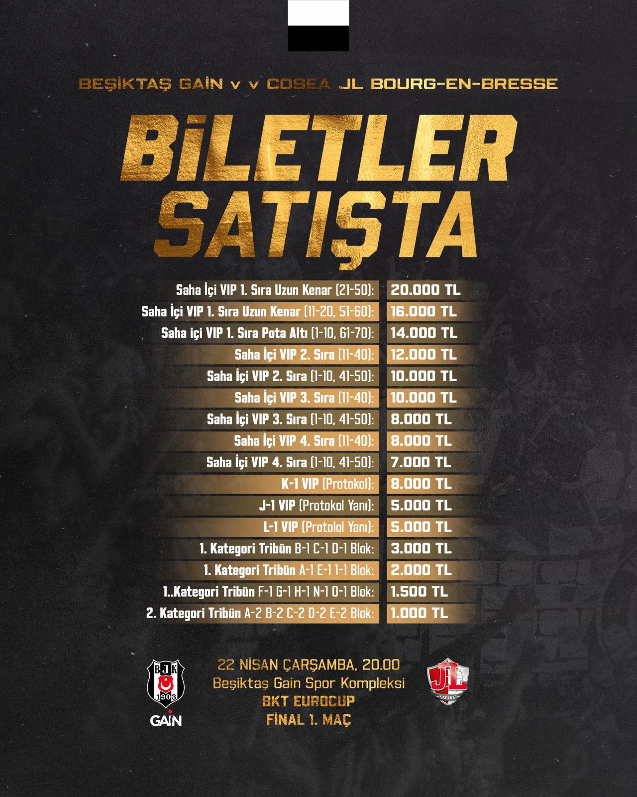 Beşiktaş Gain Erkek Basketbol Takımı, BKT EuroCup şampiyonluğu yolundaki en kritik viraja giriyor. Siyah-beyazlıların, Fransız temsilcisi Cosea JL Bourg-en-Bresse ile oynayacağı EuroCup Final serisinin ilk maçı için biletler resmen satışa sunuldu.
