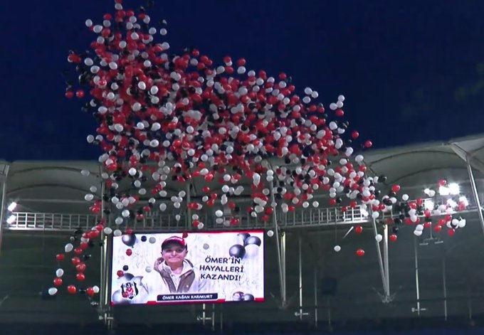 Trendyol Süper Lig'in 27. haftasında Beşiktaş, sahasında Kasımpaşa'yı konuk etti. Beşiktaş, lösemi hastalığını yenen Ömer Kağan Karakurt için maç öncesi tribünlerde balon uçurdu.