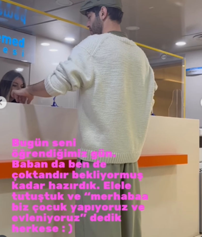 Daha sonra hamile olduğunu öğrendiğini ve bu sürecin evlilik kararlarını hızlandırdığını belirten Kökdemir; "Bugün seni öğrendiğim gün, baban da ben de çoktandır bekliyormuşuz kadar hazırdık. El ele tutuştuk ve 'Merhaba, biz çocuk yapıyoruz ve evleniyoruz' dedik herkese" ifadelerini kullandı.
