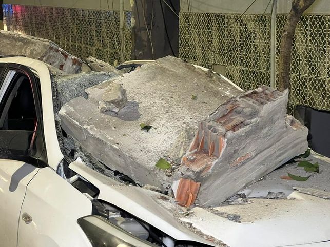 Beton parçaları 3 aracın üzerine düştü Son dakika haberleri