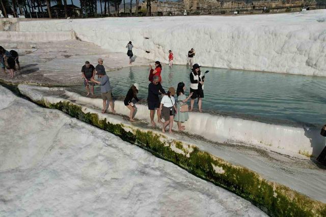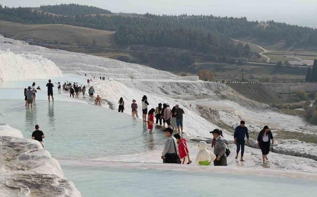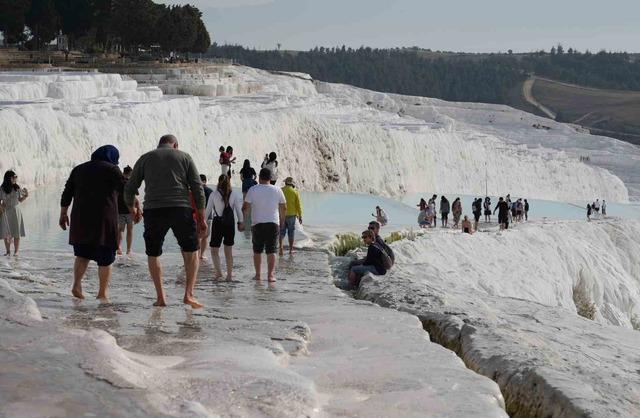 UNESCO Dünya Kültür Mirası Listesi’nde yer alan Pamukkale travertenlerine yerli ve yabancı turistlerin ilgisi sürüyor. Havanın iyi olmasıyla birlikte bölge, turistlerin akın ettiği noktalardan biri haline gelirken binlerce ziyaretçiyi ağırlamaya devam ediyor. Travertenlerin bulunduğu alanda en fazla dikkat çeken ziyaretçi grubunu ise Asya ülkelerinden gelen turistler oluşturdu. Özellikle Güney Kore, Japonya, Çin ve Tayvan’dan gelen kafilelerin yoğunluğu bölgede hareketliliği artırdı. Ziyaretçiler, travertenlerin doğal güzelliğini yakından inceleyerek bol bol fotoğraf ve video çekti.