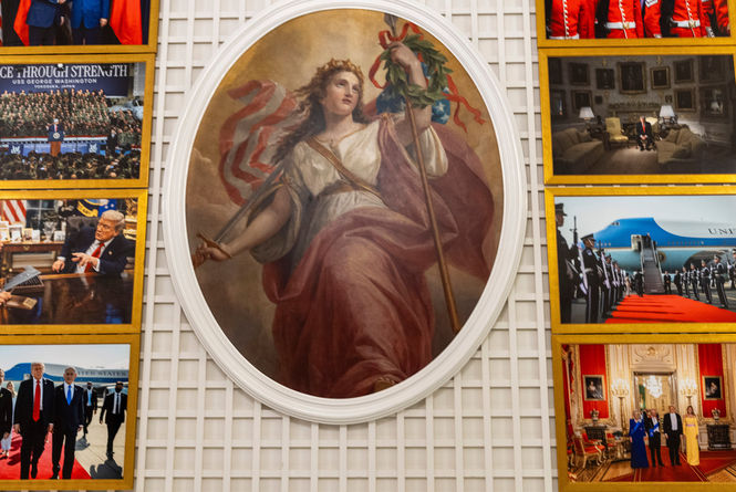 ABD Başkanı Donald Trump ile Rusya Devlet Başkanı Vladimir Putin'in birlikte yer aldığı çerçeveli fotoğrafın, Beyaz Saray'daki yenilenen bir salonda sergilendiği belirtildi.