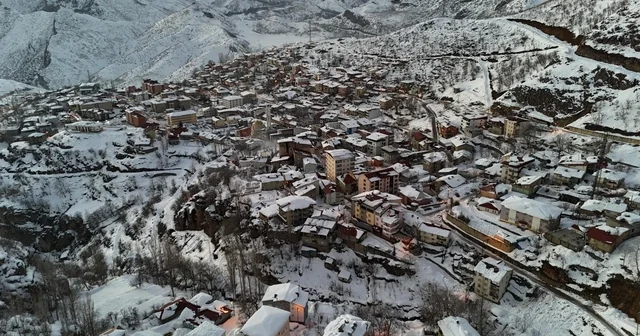 Beytüşşebap'ta aralıklarla devam eden kar yağışıyla birlikte ilçe merkezi ile çevresindeki derin vadiler ve yüksek yamaçlar, beyaza büründü. Kato Dağı eteklerinde yer alan ilçedeki beyaz manzara dronla görüntülendi. Çekimlerde, kar altındaki coğrafi yapı ve doğal güzellikler dikkat çekti.