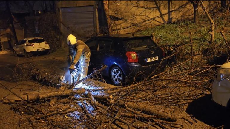 Beykoz da fırtınada devrilen ağaç 2 otomobilin üzerine düştü