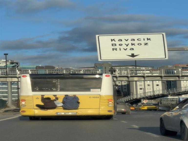 Görüntüler, dün Kavacık'ta kaydedildi. Edinilen bilgilere göre, iki çocuk seyir halindeki İETT otobüsünün arka kısmına asılarak bir süre yolda ilerledi. Çocukların, trafikte can güvenliklerini hiçe sayarak ilerlediği anlar, başka bir araç sürücüsü tarafından cep telefonu kamerasıyla görüntülendi. Otobüsün durağa yanaşmasıyla çocuklar uzaklaştı.