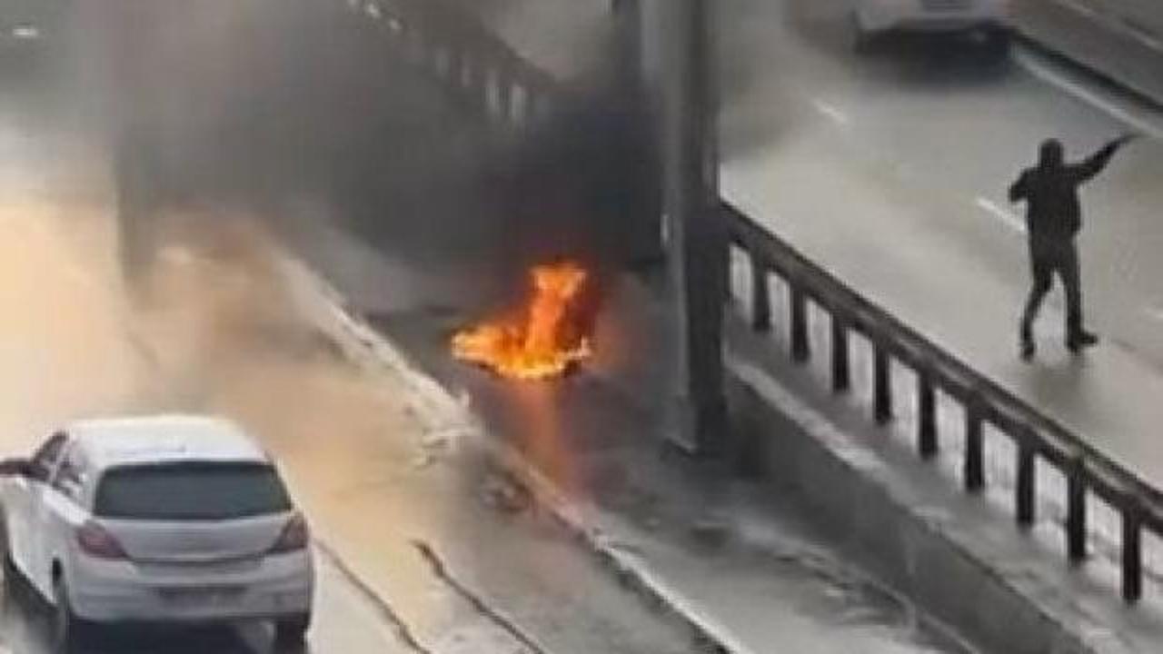 Beylikdüzü D 100 Otoyolu nda motosiklet alev alev yandı
