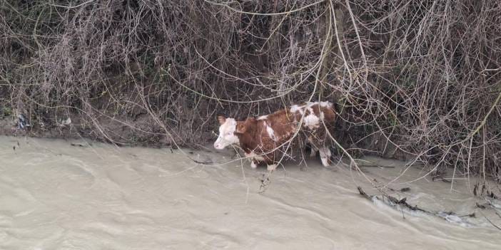Dereye düşen buzağı için köylüler seferber oldu