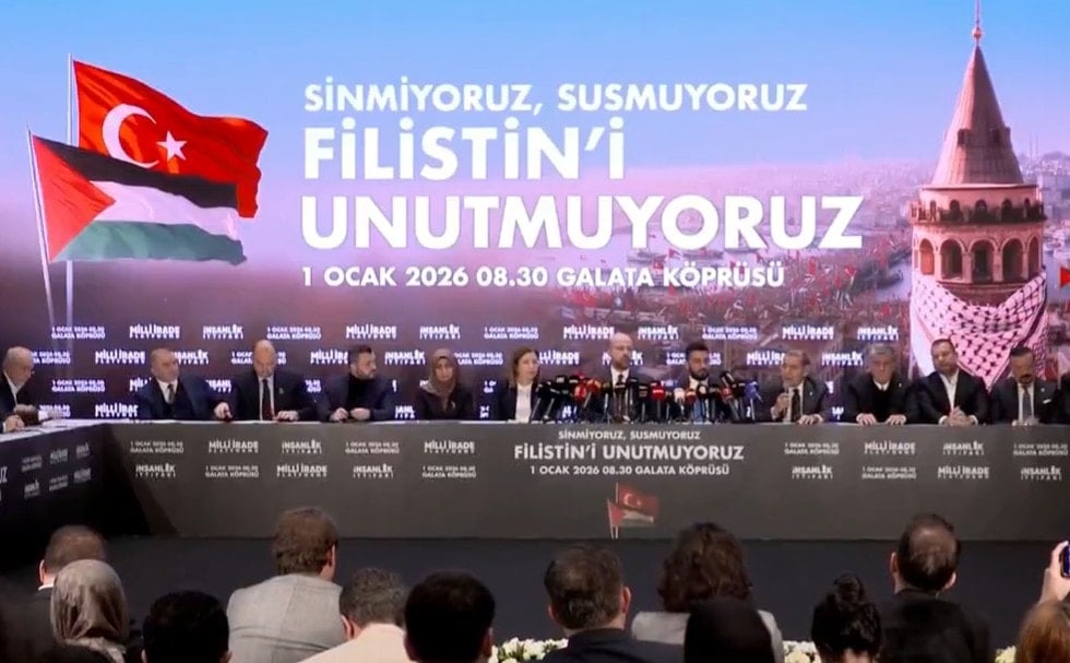 Milli İrade Platformu tarafından, 1 Ocak 2026'da Galata Köprüsü'nde gerçekleştirilecek Gazze'ye destek mitingine ilişkin TÜGVA Genel Merkezi'nde basın toplantısı düzenlendi.