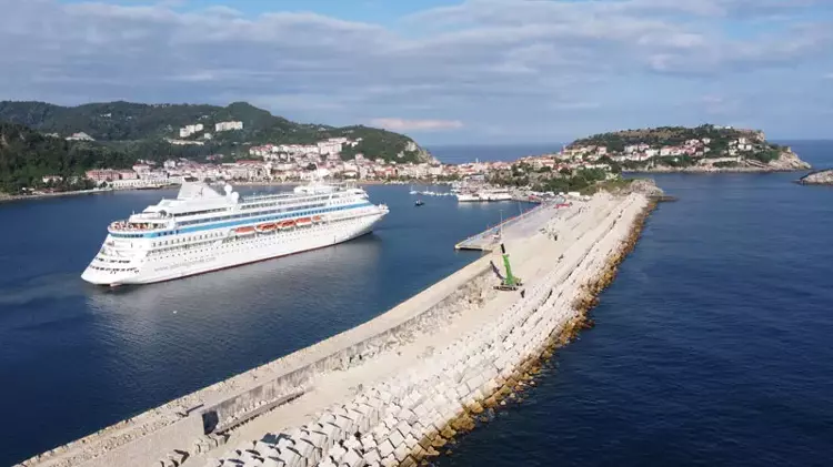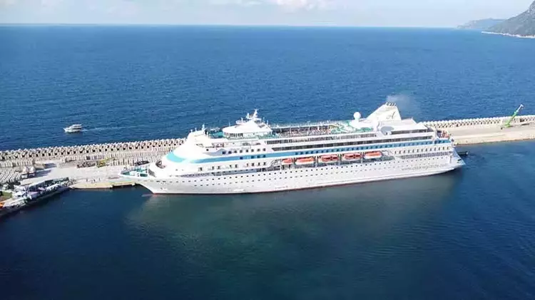 193 metre uzunluğu ve 30 metre genişliğiyle 11 katlı dev kruvaziyer, Ağustos 2022'den bu yana Amasra'ya yaptığı 91. seferi tamamlamış oldu.