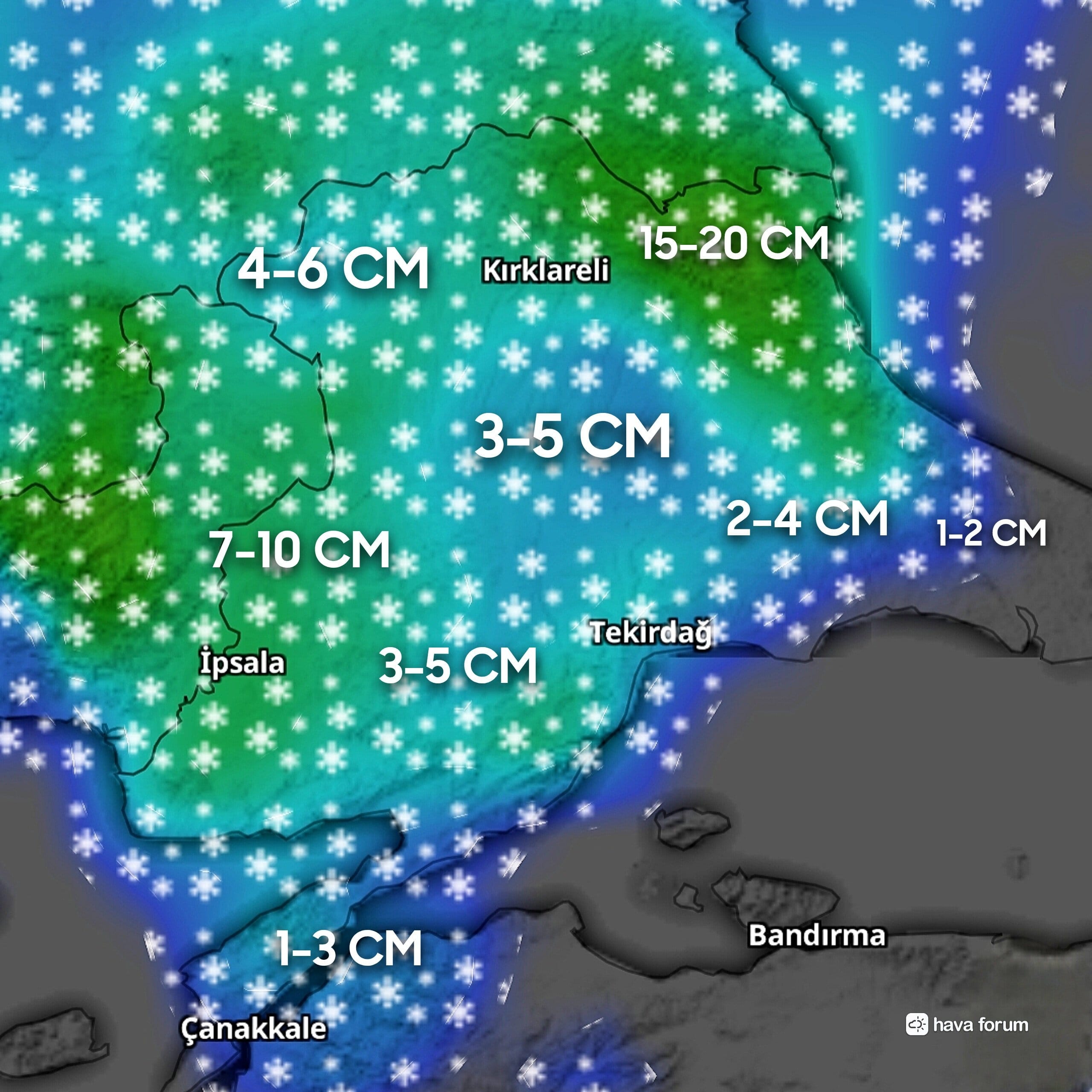 Foto: Havaforum X hesabıKAMU KURUMLARINA DA KAR ENGELİKırklareli Valiliği sosyal medya hesabından yaptığı duyuruda kar yağışının Kırklareli merkez, Kofçaz, Demirköy ve Vize çevrelerinde 10-20 cm etkili olmasının beklendiği kaydedildi. Valilikten gelen açıklama şu şekilde: