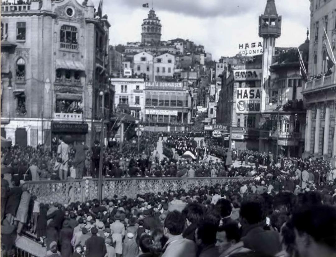 Saat 09.10'da kortej, Kabataş, Tophane, Karaköy, Galata Köprüsü, Eminönü ve Gülhane Parkı üzerinden Sarayburnu'na doğru hareket ederken, Atatürk'ün naaşını taşıyan top arabasının Galata Köprüsü'nden geçişi sırasında çekilen fotoğraflar dikkati çekti.