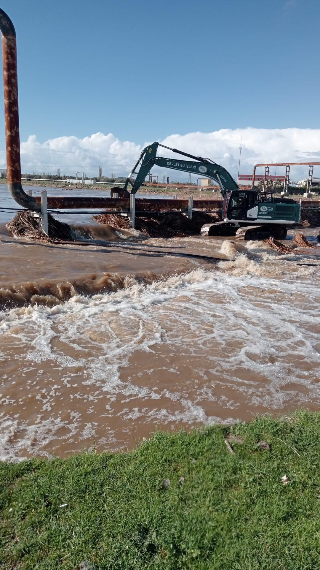 DSİ, iş makineleri ve teknik ekipleriyle sahada; suyun akışını düzenlemek, taşkın hasarını azaltmak ve riskli noktaları kontrol altına almak için aralıksız müdahale yürütüyor.
