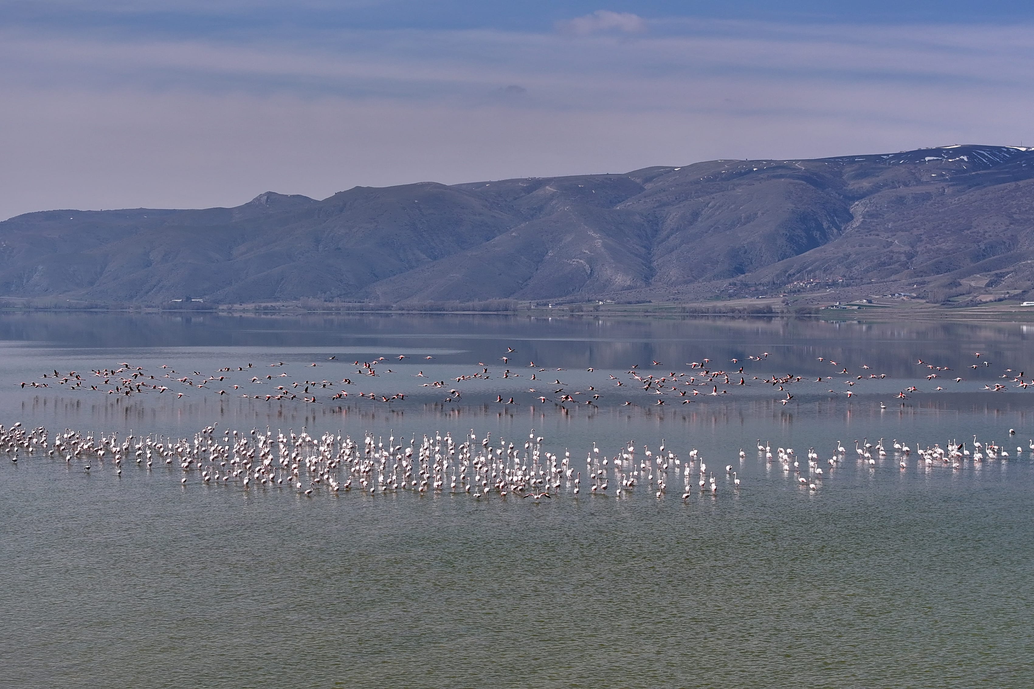 Kayseri'nin Sarıoğlan ilçesi sınırlarında yer alan, Tuzla Palas Gölü, etkili kar ve yağmurların ardından yüzeyi 30 kilometrekareye çıkarak yeniden hareketlendi. Biyolojik çeşitliliğiyle dikkat çeken göl, uzun yıllar sonra Anadolu’da “allı turna” olarak bilinen flamingolara ev sahipliği yapmaya başladı.
