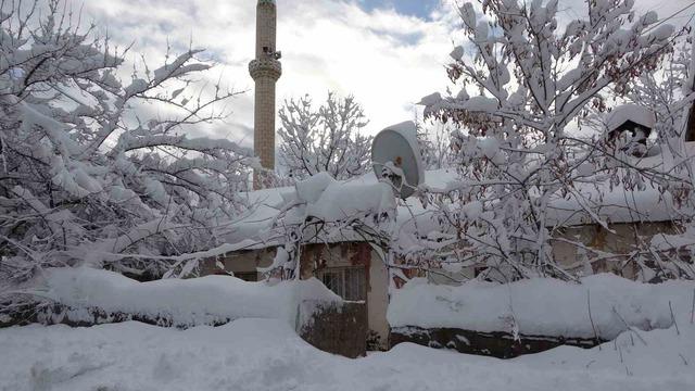 Bitlis’te günlerdir yağan kar yağışı nedeniyle tek katlı evler, arabalar ve yön levhaları kardan adeta kayboldu.