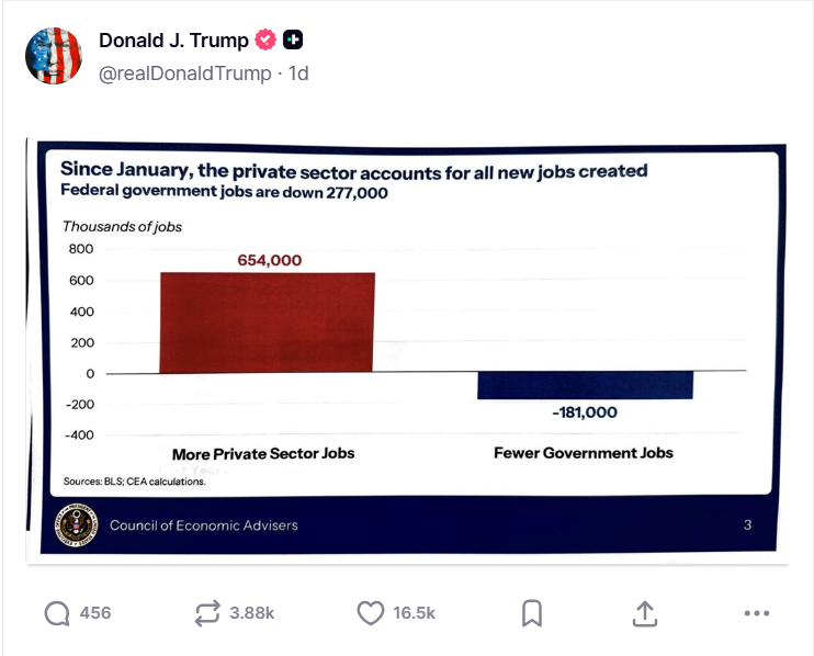 Trump’ın Truth Social platformunda yayımladığı gönderide yer alan grafikte, henüz yayımlanmamış istihdam rakamları bulunuyordu. Bloomberg’in incelemesine göre, Trump’ın paylaştığı veriler daha sonra resmi olarak açıklanan rakamlarla birebir örtüştü.