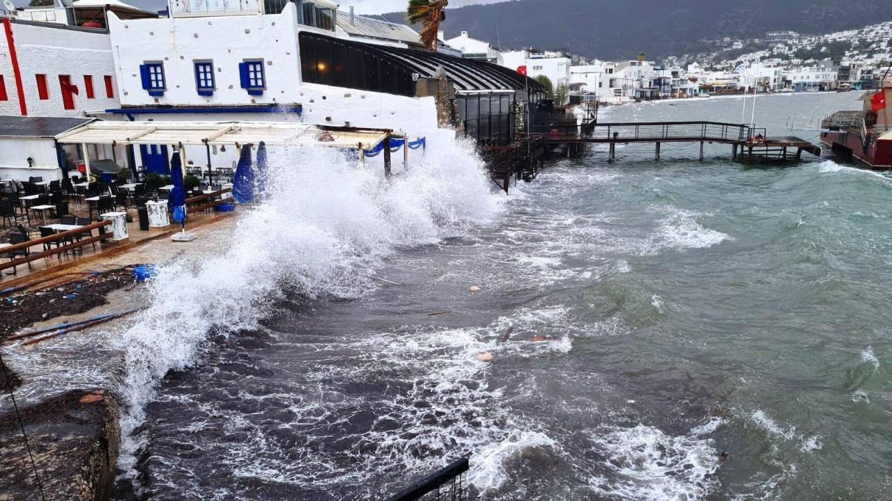 Fırtına nedeniyle Bodrum- Datça arası feribot seferleri karşılıklı olarak iptal edildi. Kıyıya vuran dalgaların boyu yer yer 3 metreyi buldu. Fırtınanın gece saatlerinde etkisini yitirmesi bekleniyor.