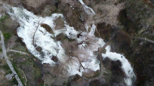 Öte yandan suyun yoğun akışı nedeniyle bölgede güvenlik önlemleri de artırıldı. Jandarma ekipleri, şelalenin alt kısmına inilen yürüyüş yolunun tehlike oluşturabileceği gerekçesiyle bölgeye şerit çekerek ziyaretçilerin aşağıya inmesine izin vermiyor.