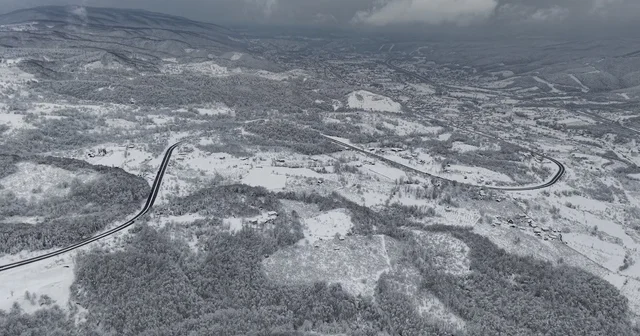 Düzce'de etkili olan kar yağışı ile birlikte yüksek kesimlerde ve Bolu Dağı'nda kartpostallık görüntüler ortaya çıktı.