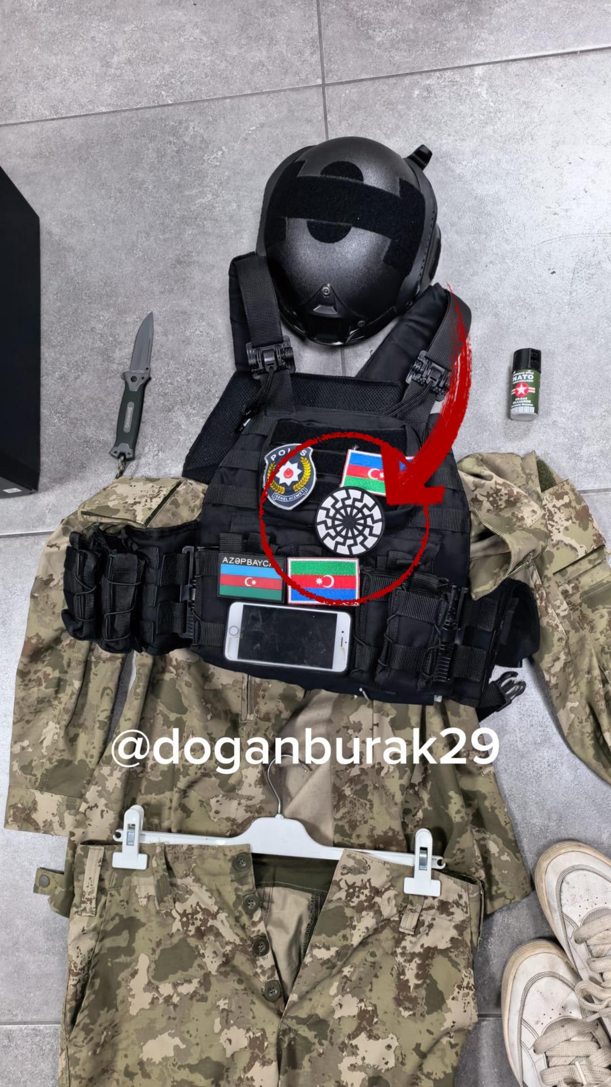 Yeleğin üzerinde Nazi Almanyası döneminden kalma bir sembol olan “Kara Güneş” sembolü olduğu görüldü.